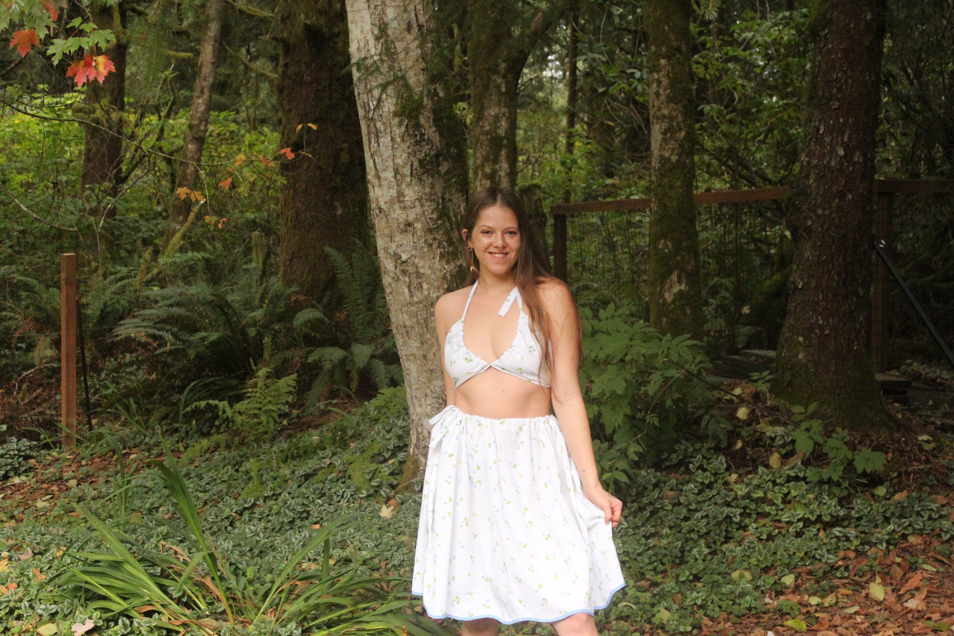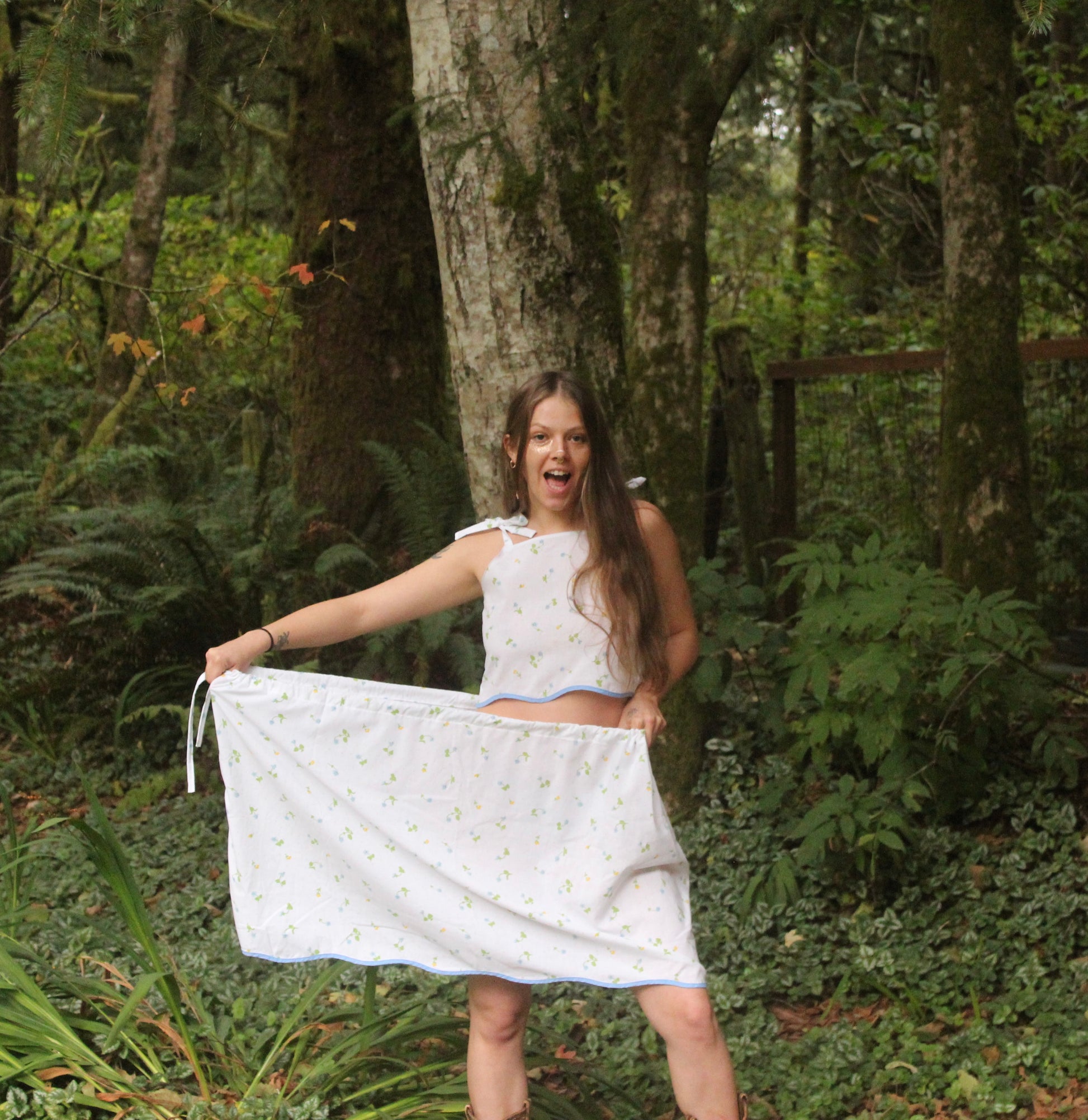 I created this clothing line with body positivity, sustainability and growth in mind. These shirts are a one size fits many as they are extremely adjustable and can be worn many ways, as are the skirts along side them. These pieces will last a lifetime and grow with you through all phases of life.