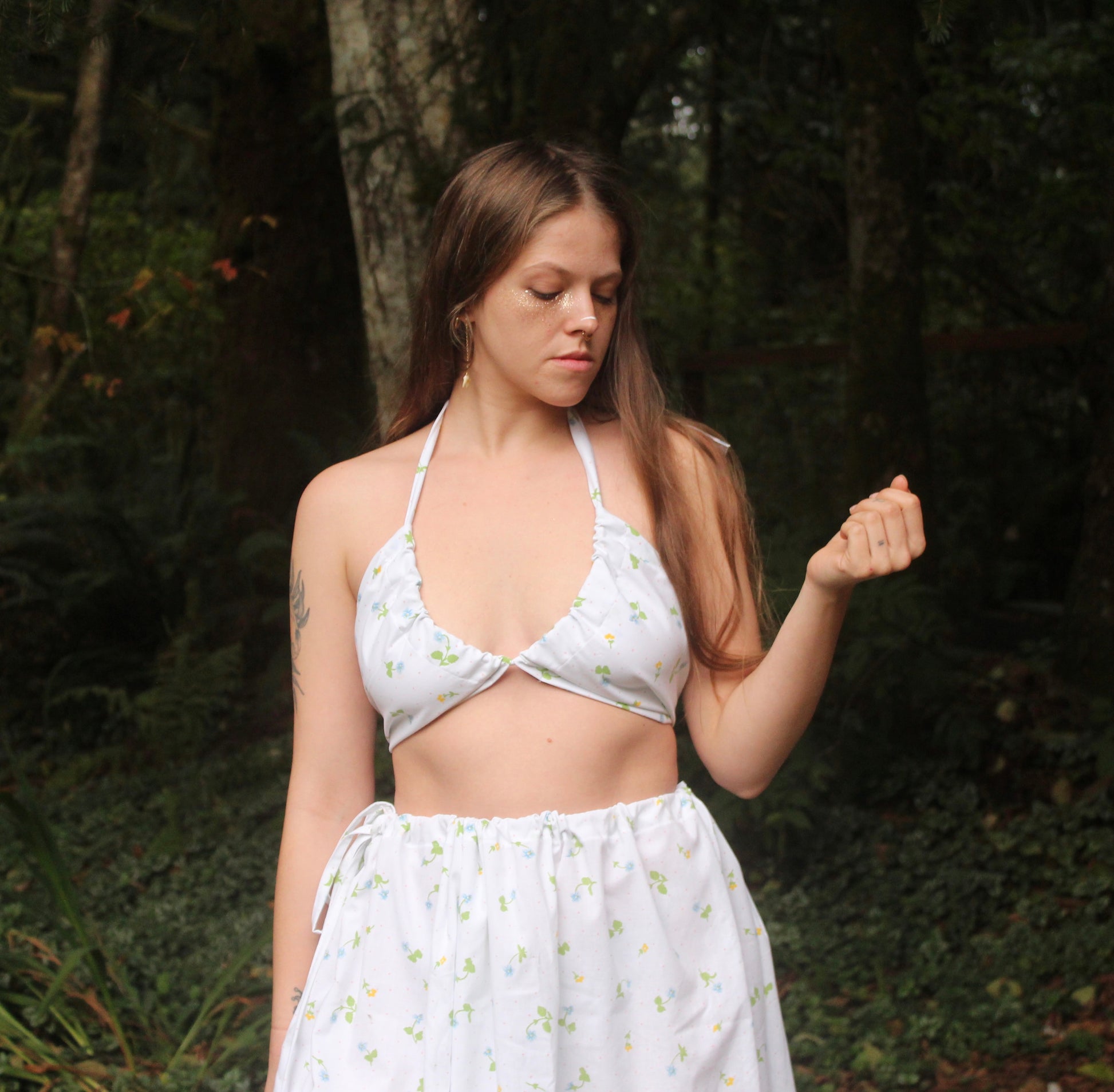 I created this clothing line with body positivity, sustainability and growth in mind. These shirts are a one size fits many as they are extremely adjustable and can be worn many ways, as are the skirts along side them. These pieces will last a lifetime and grow with you through all phases of life.